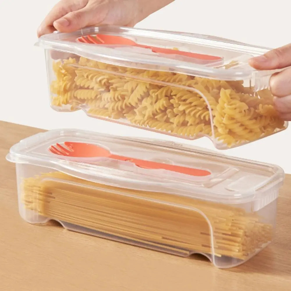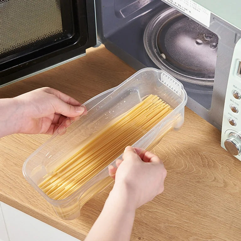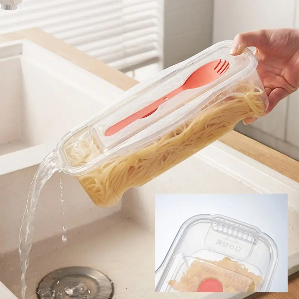 ✔ Microwave-Friendly Pasta Cooker: Cook noodles or pasta quickly in the microwave with the included strainer and flatware for effortless meals.
